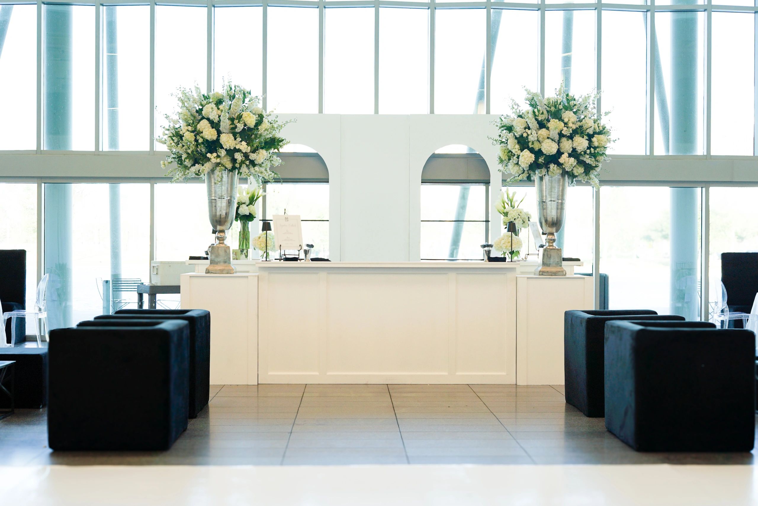 Our white bar can be configured in multiple diffrent ways! U shape with corner Totems. Can also be put in a straight line to make a 25 ft bar. Fully Customizable you can put your logo in the middle. Totems Can be placed anywhere.